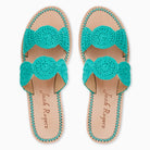 From beach days to boardwalks, the Laurin Crochet Sandal is a breezy, boho-chic sandal with endless wearability. Easy to slip on and head out, these lightweight summer shoes pair a lush leather footbed with contrasting woven details. Two crocheted straps and a bright Aquatic color make these minimalist woven sandals a perfect patio companion.