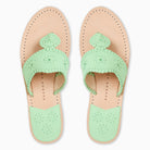 The Jacks Flat Sandal in Pistachio brings a pastel pop of color to an American classic. Crafted with a Nappa leather upper and soft pigskin lining, they offer a comfortable fit with a polished feel. The leather insole and German rubber sole provides reliable support for all-day wear. Finished with an almond toe and a subtle low heel, our Nappa leather sandals are perfect for weekend getaways, lunch dates, or strolls through the farmers market. Easy to wear and effortlessly charming, they're your new go-to for sunny days.