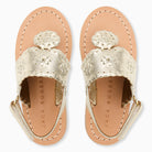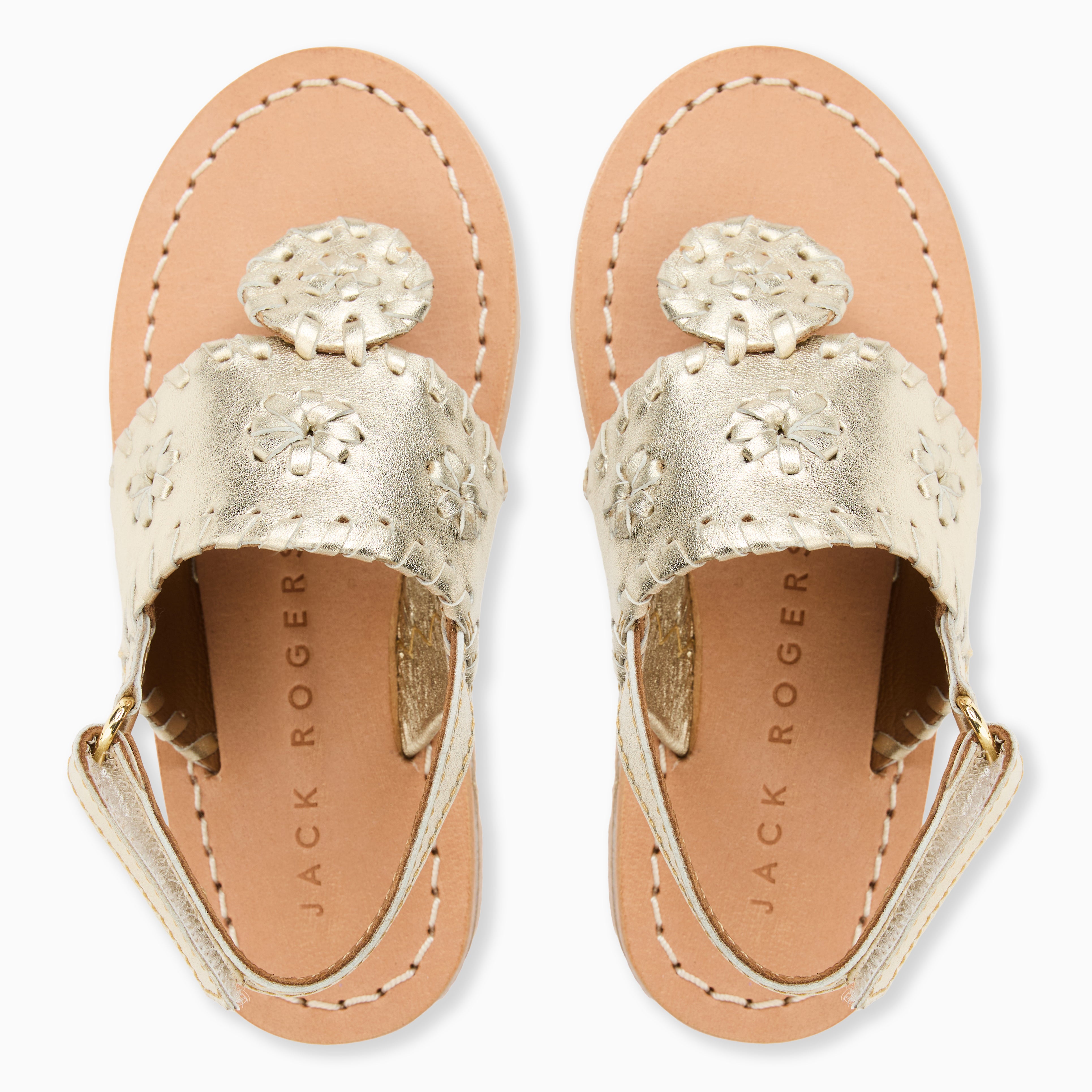 The Toddler Jacks Platinum Metallic Nappa Leather Flat Sandal brings a subtle shimmer to her spring and summer looks. Crafted from smooth metallic leather, this style features a secure strap to help keep little steps steady, along with the iconic Jack Rogers medallion and signature whipstitching for a timeless finish. Designed to coordinate beautifully with Mom’s favorite pair, these platinum sandals for toddlers are an easy, elevated choice for warm-weather outfits.The Toddler Jacks Platinum Metallic Nappa Leather Flat Sandal brings a subtle shimmer to her spring and summer looks. Crafted from smooth metallic leather, this style features a secure strap to help keep little steps steady, along with the iconic Jack Rogers medallion and signature whipstitching for a timeless finish. Designed to coordinate beautifully with Mom’s favorite pair, these platinum sandals for toddlers are an easy, elevated choice for warm-weather outfits.