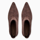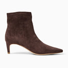 Rich in style and effortlessly chic, the Jack Rogers Charleston Kitten Heel Bootie in hot fudge blends vintage flair with modern comfort. Crafted from soft stretch microsuede and lined with a plush interior, these dark brown ankle boots cradle your feet all day long. The pointed toe and sleek 1.65-inch heel add a polished finish, while a durable rubber-blend sole ensures every step feels as comfortable as the first.