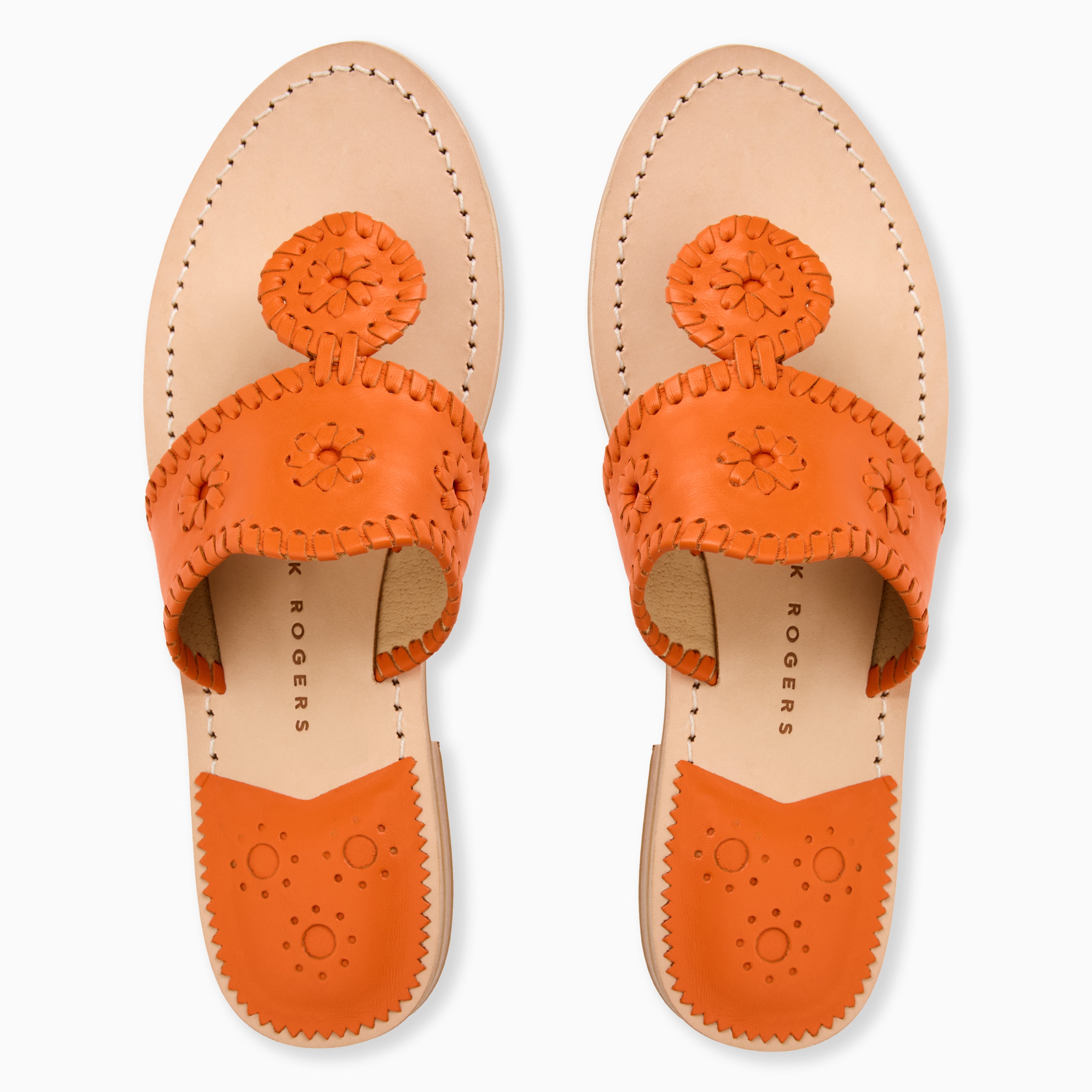 The Jack Rogers Flat Sandal is the springtime accessory you need to finish your seasonal outfits. These designer sandals are crafted with soft nappa in stunning coral rose to combine comfort and style for an all-day wearable look. A classic almond toe brings a vintage touch to your footwear, while a leather-stacked heel and sturdy sole ensure that these sandals stay beautiful.