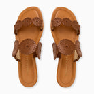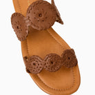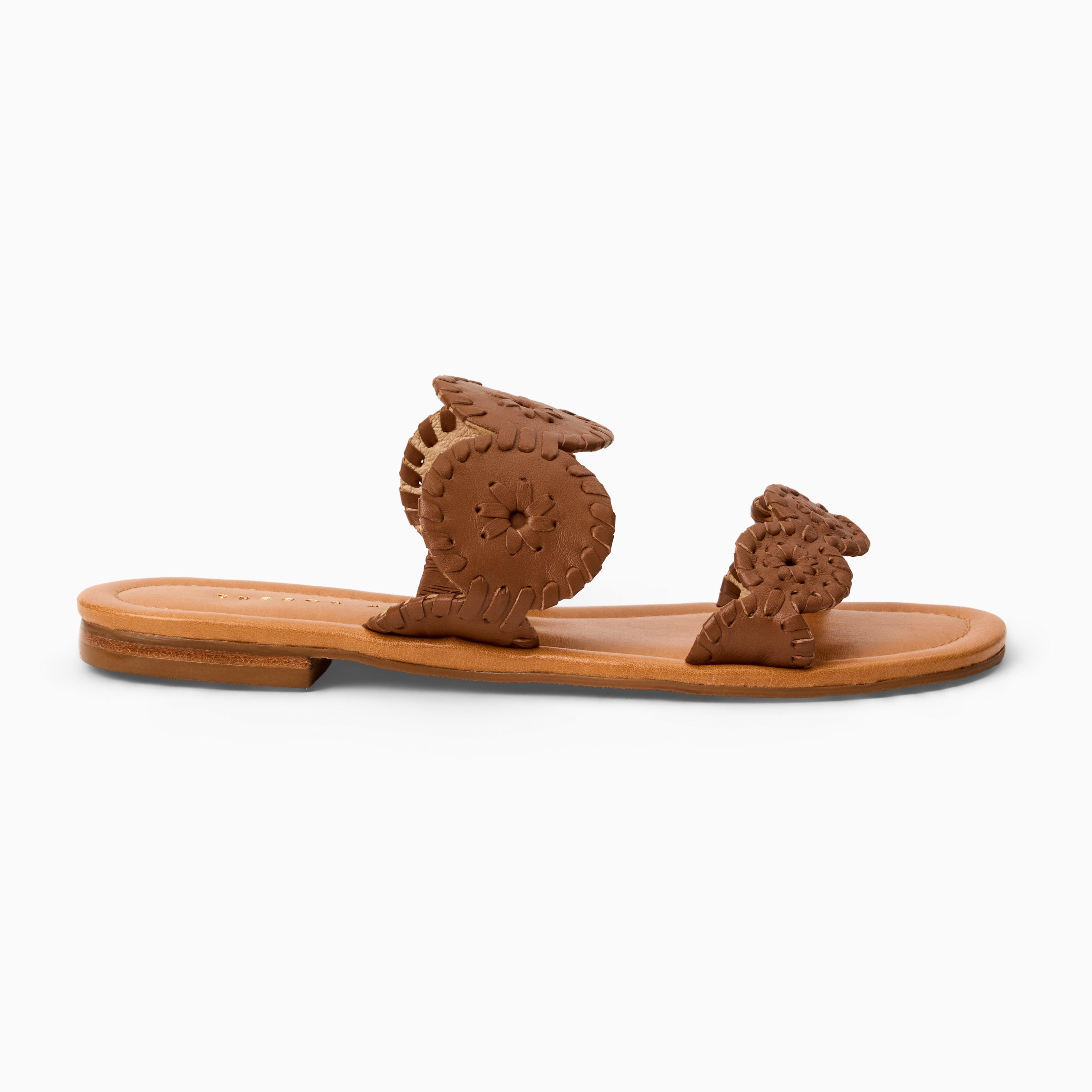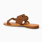 Add effortless elegance to your everyday ensemble with the Jack Rogers Lauren II Flat Sandal in rich cognac. Crafted with soft nappa leather, a luxury leather lining, and a sturdy leather-stacked heel, these almond-toed sandals are a sophisticated finish to your favorite spring and summer outfits. Pair them with deep reds or natural-toned clothing and wear them anywhere you'd like to make a style statement this season.