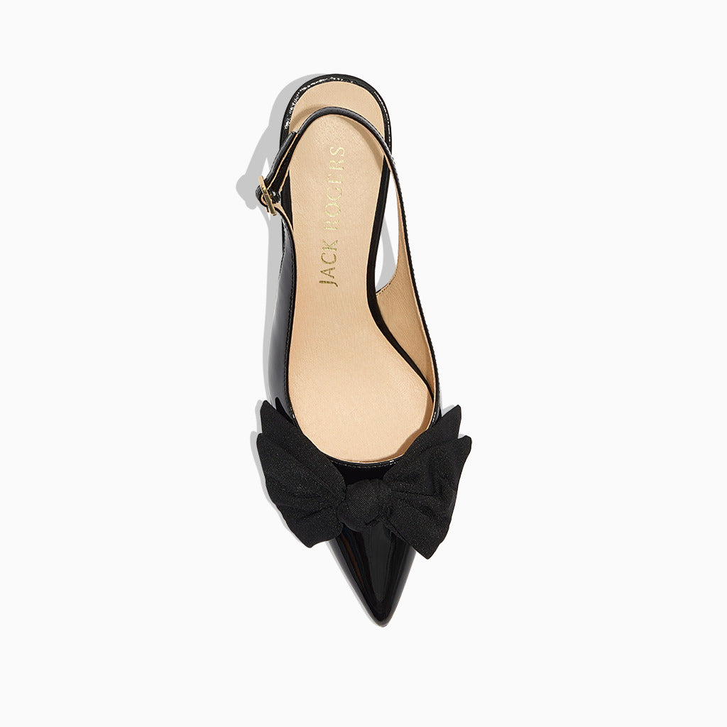 Ready to get dressed up? Introducing our new Debra Sling Back kitten heel. In the perfect height, 2-inches, you can wear it all day and all night! The satin bow is feminine and patent leather or Nappa leather work back to any outfit!