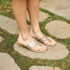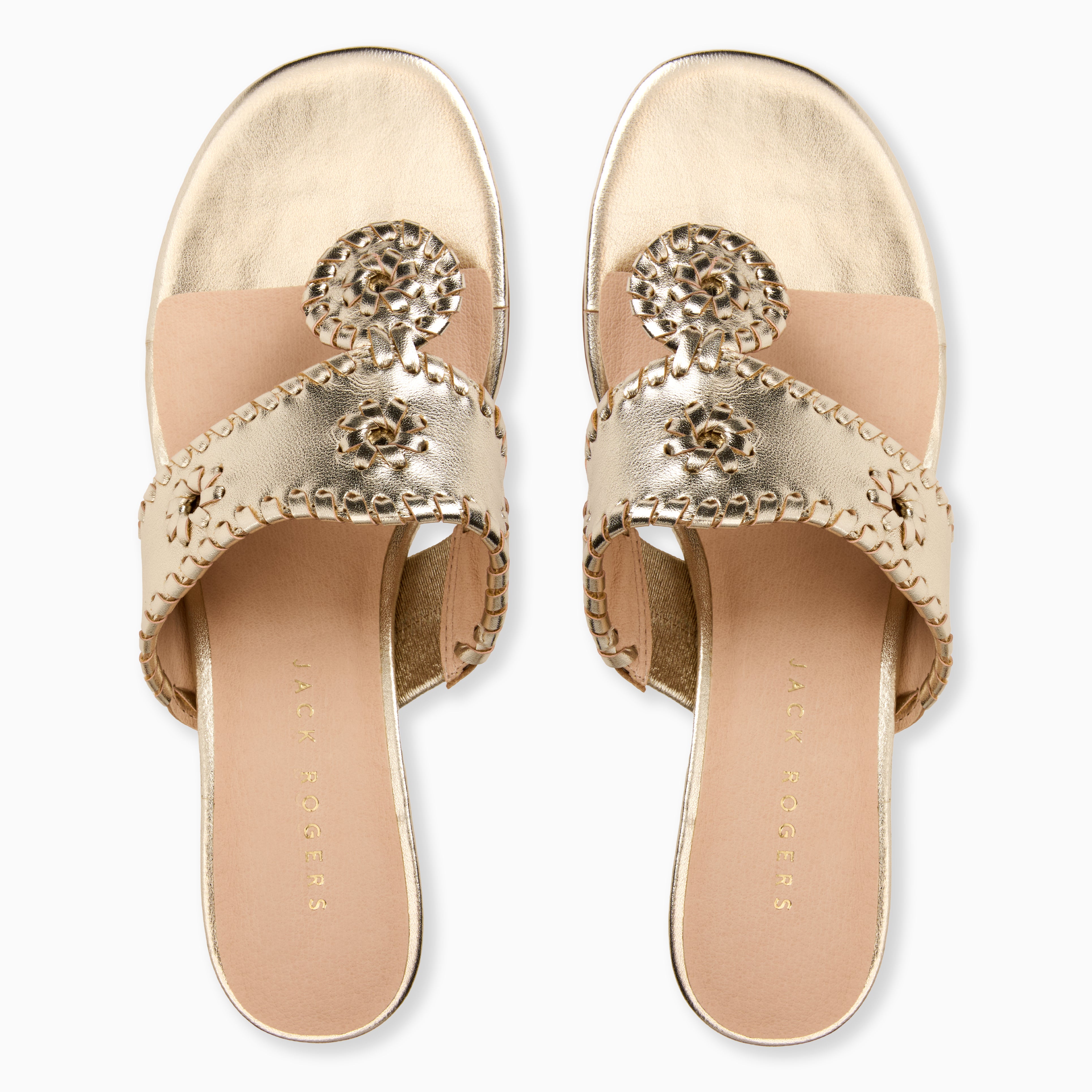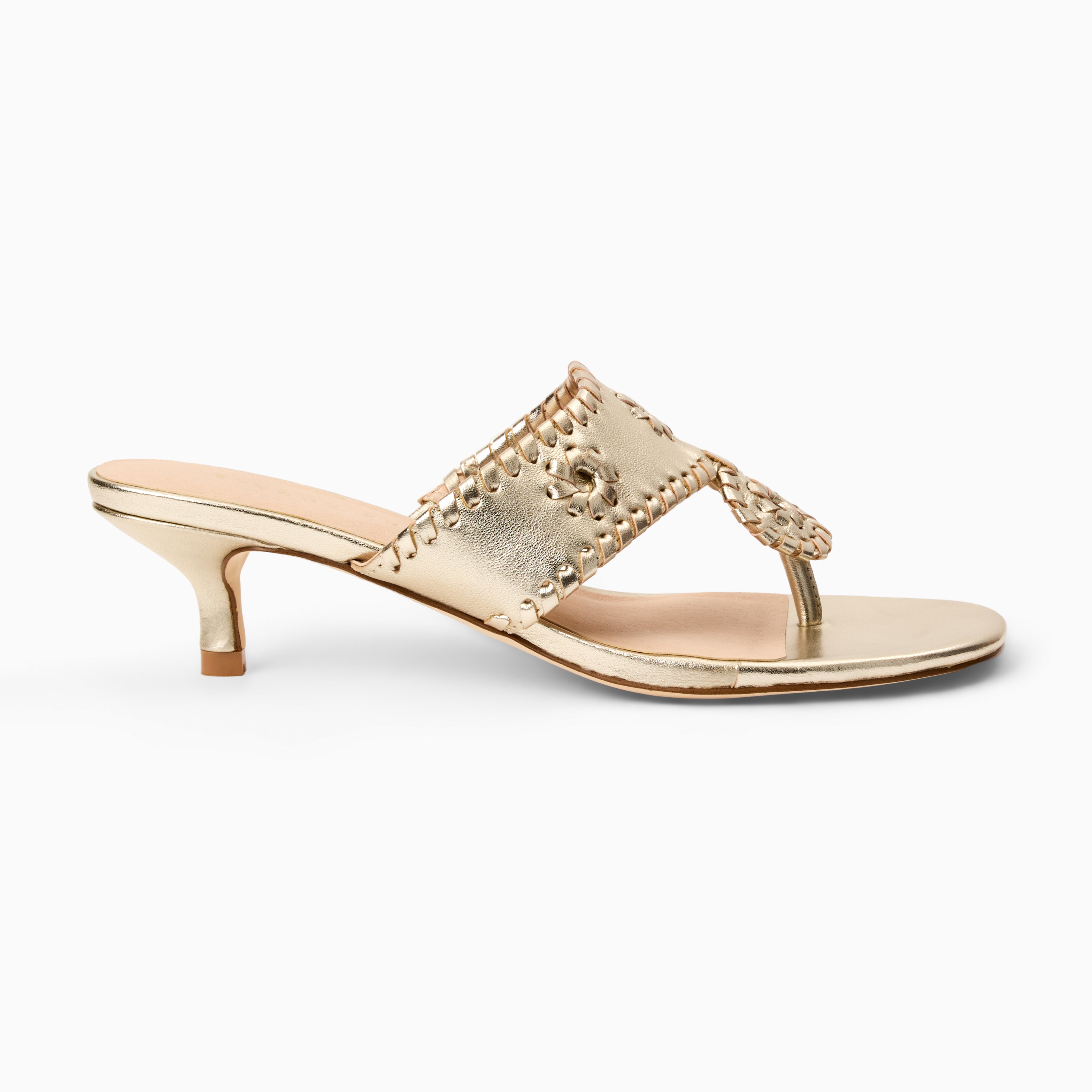 The Jack Rogers Platinum Kitten Heel offers an elevated look with effortless wearability. Crafted in metallic platinum Nappa leather, the streamlined design is finished with a 1.5" heel that adds subtle lift while remaining comfortable for extended wear. A refined option that transitions easily from daytime occasions to evening plans.