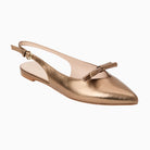 Add a little warmth to your day with the Lennox Flat Sling in Bronze. These comfortable slingback pumps are made with buttery soft Nappa leather, a leather-wrapped heel, and a durable rubber sole for extended wear season after season. A delicate buckle and top strap keep these elegant flat sandals in place, whether you’re strolling down the boardwalk or walking past the pool to the resort restaurant.